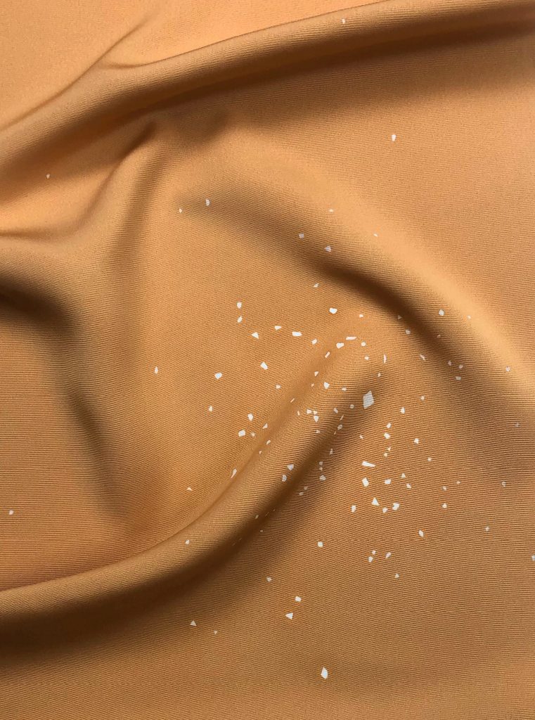 そのつぶ糊が乗った生地を染めることで、糊の部分が後に生地”白”となり、