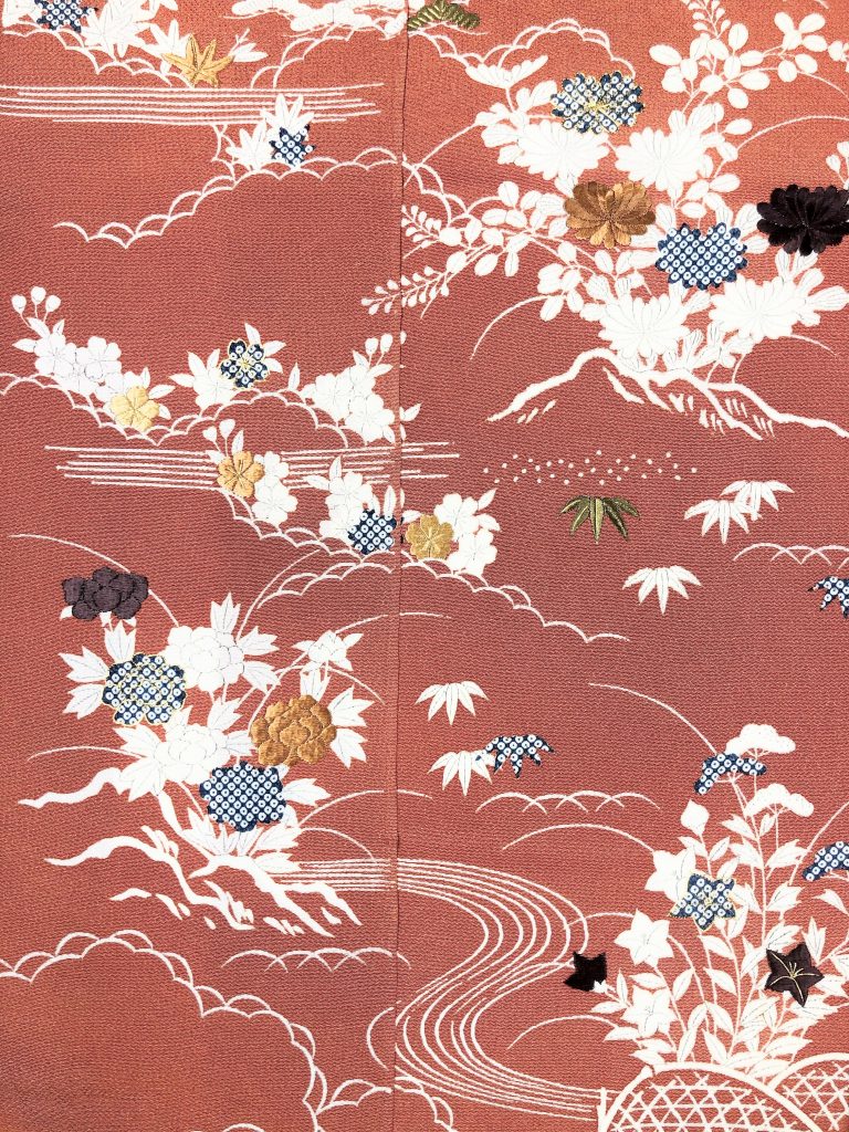 御所解文様の表現方法は地色に対し”白ぬき”(地色が染まっていない白地の部分)