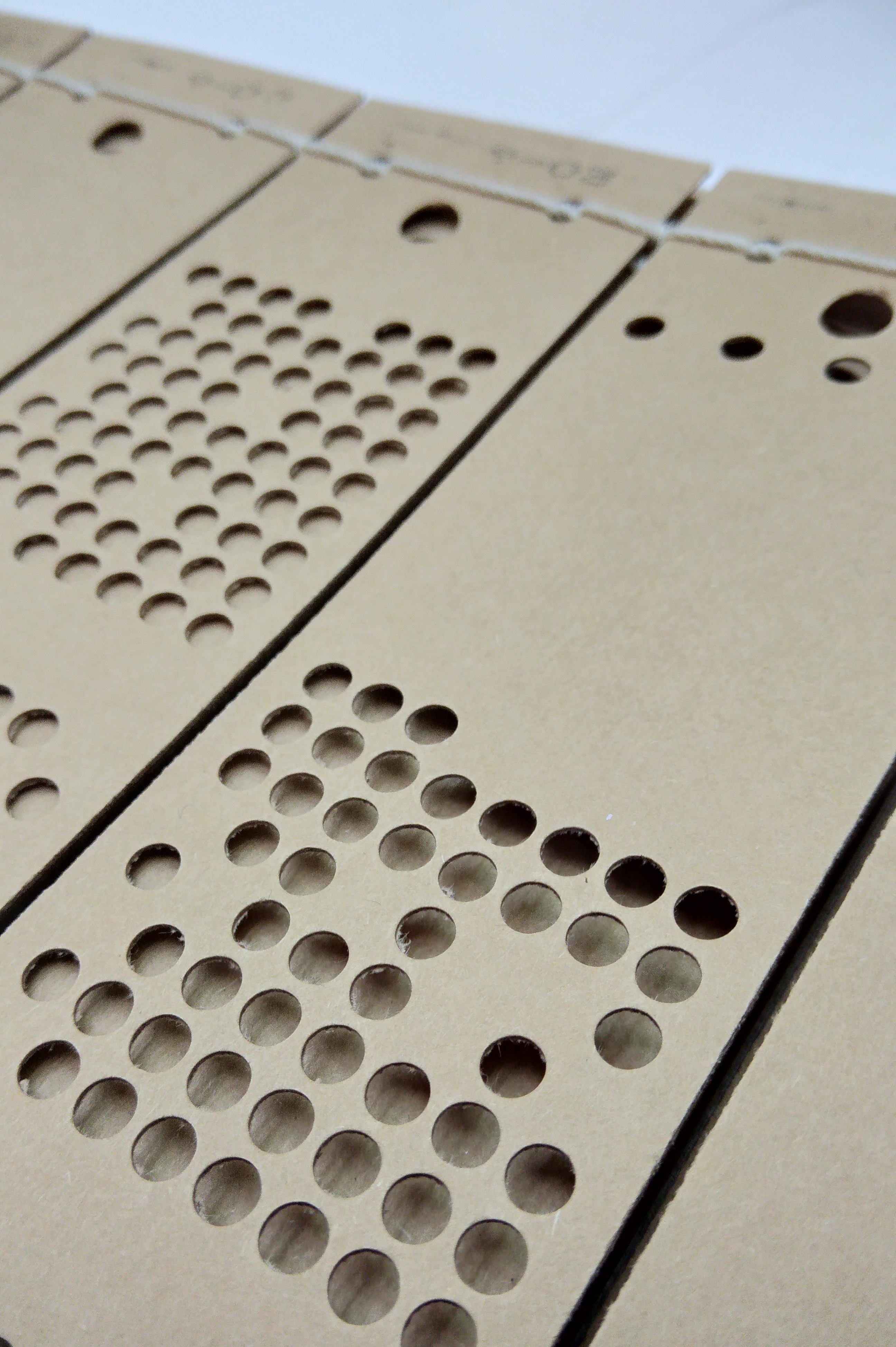 紋紙の穴があいているか否かによって、経糸を上げたり下げたりするのですが、織物の種類によって対応する穴の位置(並び)が違います。ですので、使用する機に対応する様に紋紙(フロッピー)を作ってもらいます。