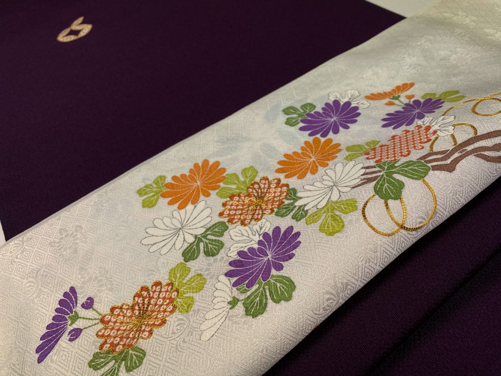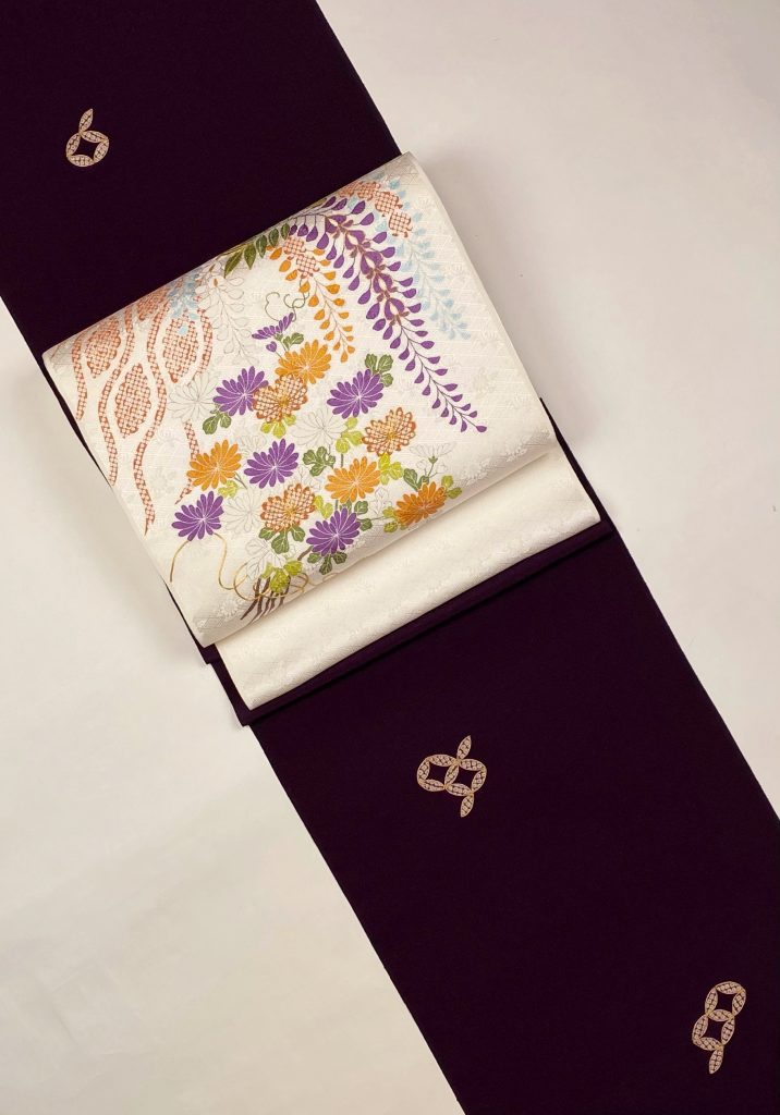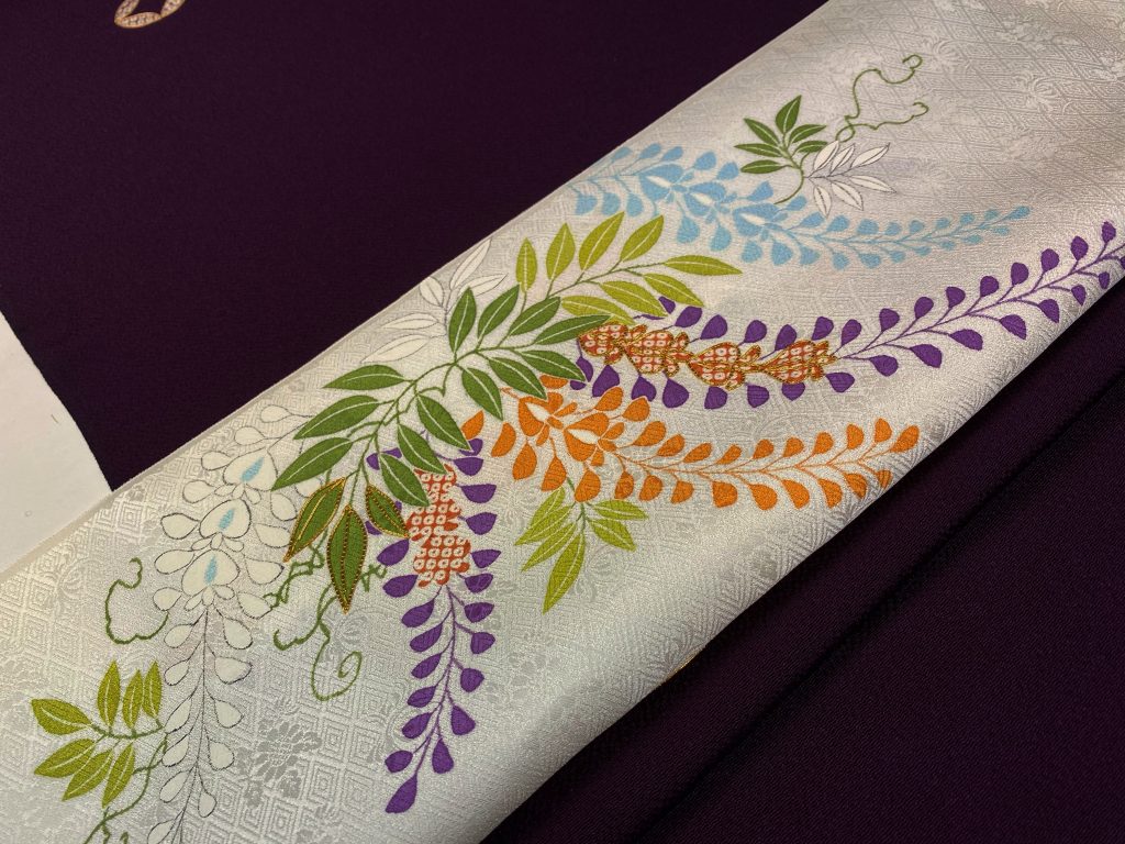 御所解染帯の多くは縮緬でご用意させていただいている為、縮緬の着物にコーディネートする時に