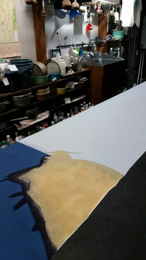 柄よりも作業道具や染料を調合するバケツやペットボトルの方が目に付きますね^^