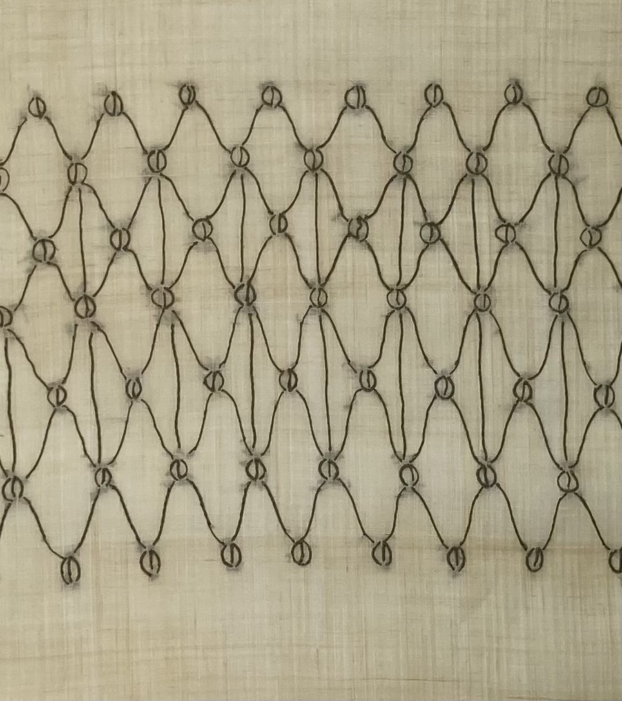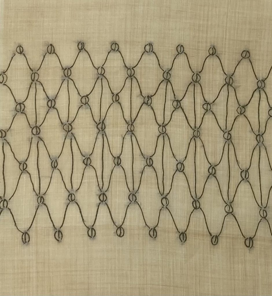 素材は生紬に近い感じで、幾何学文を変わり縫いで仕上げてます。