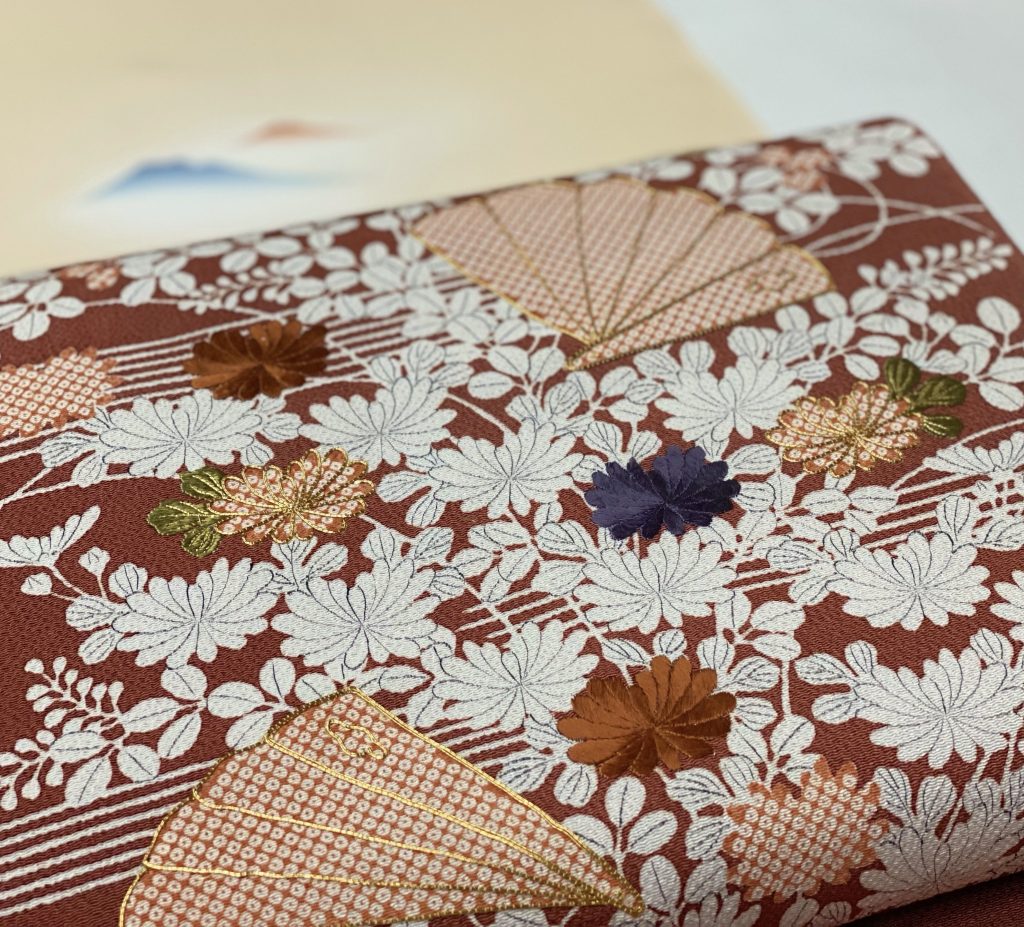 チラッと胸の位置だけ写っている遠山ぼかしは、季節の染帯を合わせても良し、御所解染帯もいろいろな色目に合う調子と思ってます!