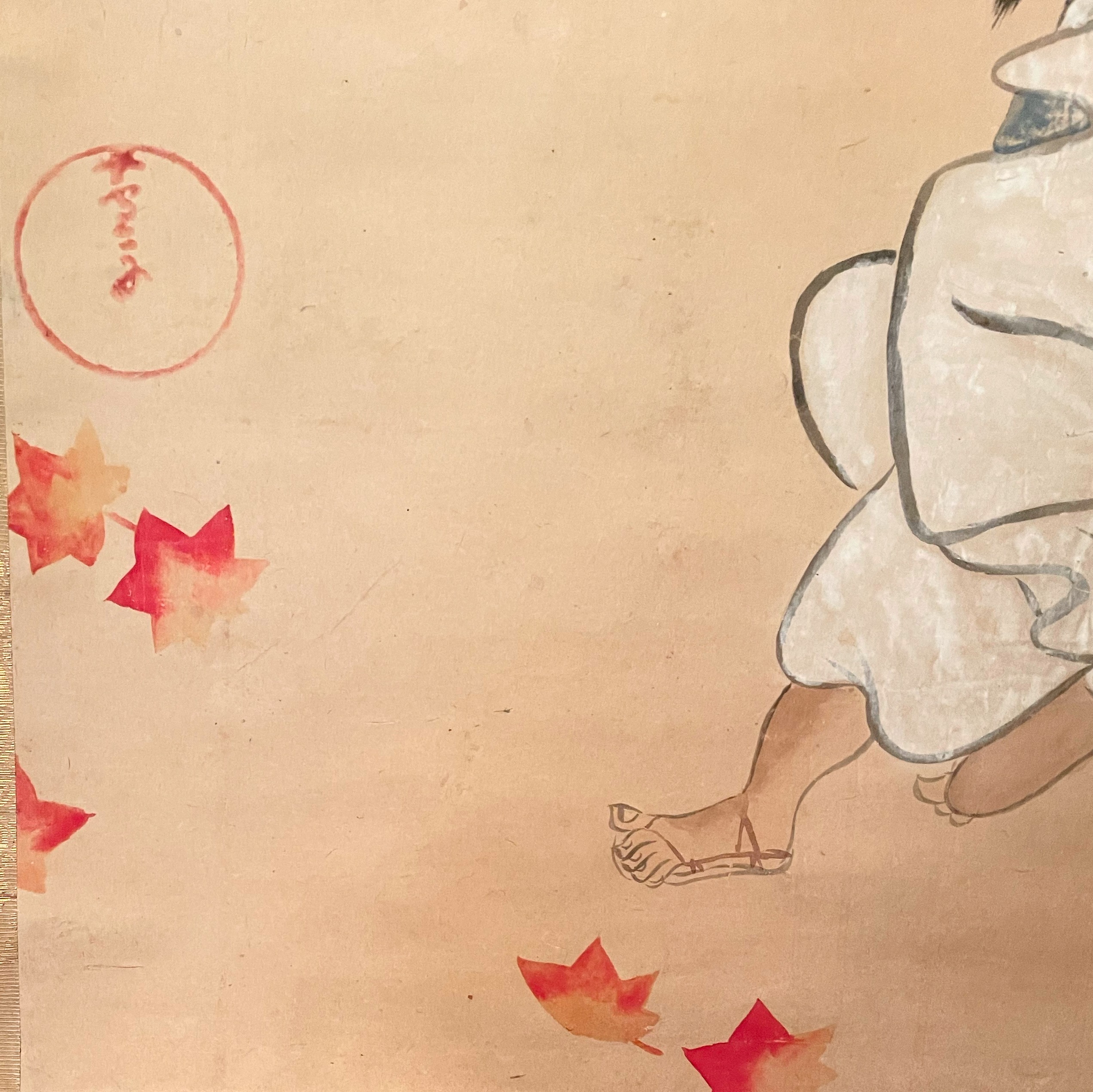 足を放り投げ、満足そうに眺めている何とも優美な軸である。